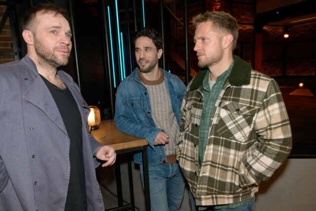 Erik (Patrick Heinrich, l.) weiß, dass der Weg zurück zu Toni ein langer wird. In der Mitte Tobias (Jan Kittmann), rechts Paul (Niklas Osterloh) (Foto: RTL / Rolf Baumgartner)Tobias (Jan Kittmann, M.) und Paul (Niklas Osterloh, r.) erkennen die Unsicherheit in Eriks (Patrick Heinrich) Auftreten. (Foto: RTL / Rolf Baumgartner)